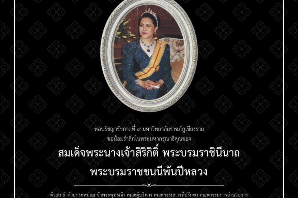 หอปรัชญารัชกาลที่ ๙ มหาวิทยาลัยราชภัฎเชียงราย ขอน้อมรำลึกในพระมหากรุณาธิคุณาของ สมเด็จพระนางเจ้าสิริกิติ์ พระบรมราชินีนาถ พระบรมราชชนนีพันปีหลวง ด้วยเกล้าด้วยกระหม่อม ข้าพระพุทธเจ้า คณะผู้บริหาร คณะกรรมการที่ปรึกษา คณะกรรมการอำนวยการ คณะกรรมการดำเนินงาน และเจ้าหน้าที่หอปรัชญารัชกาลที่ ๙ มหาวิทยาลัยราชภัฏเชียงราย